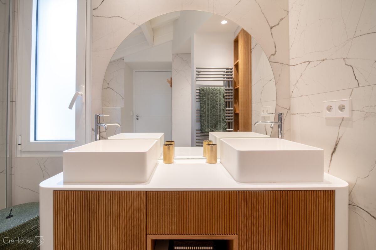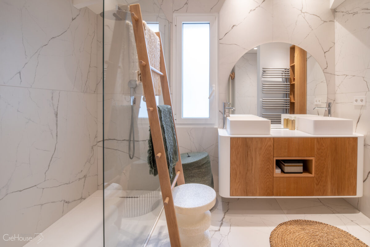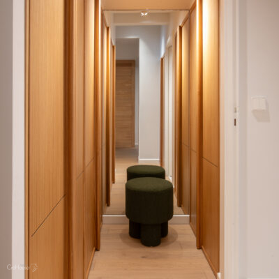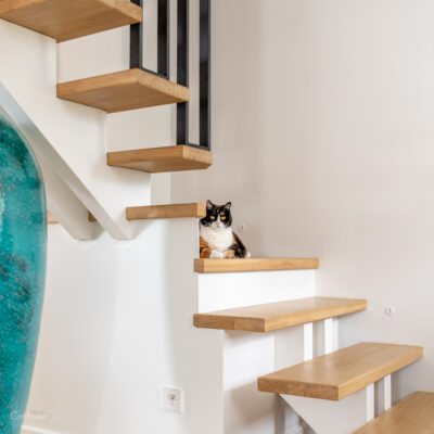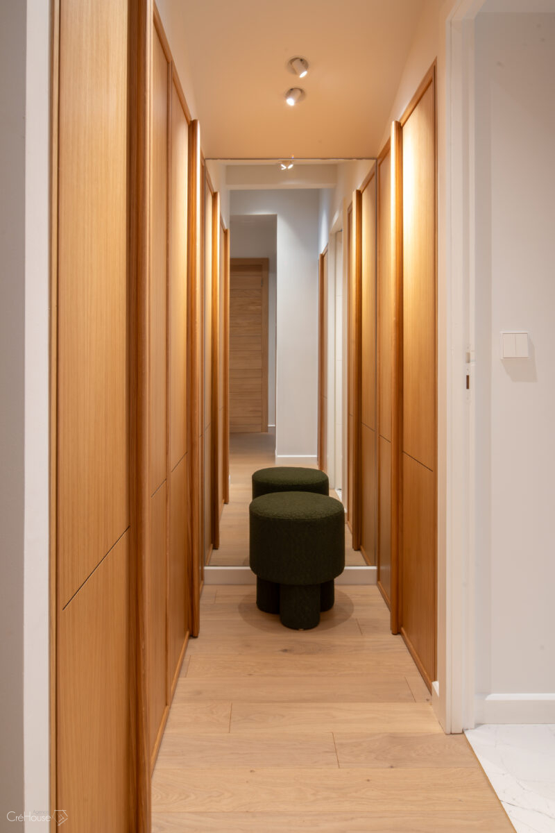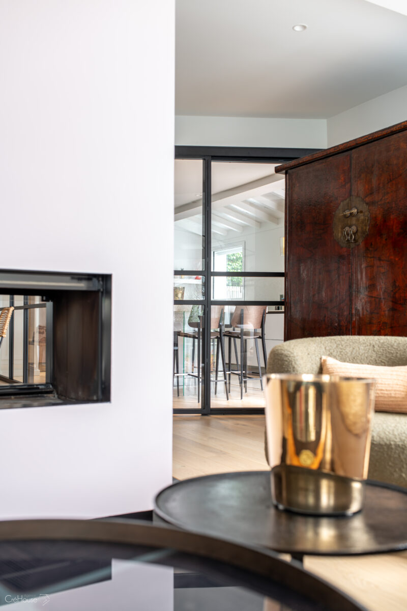 Le projet consistait à rénover et agrandir le rez-de-chaussée afin d’optimiser les volumes et de moderniser la maison. L’extension de 25 m² dédiée à la nouvelle cuisine a permis de repenser l’organisation des pièces, tandis que la création d’une entrée de 5 m² apporte une circulation plus fluide et fonctionnelle. La réfection complète des sols et le réaménagement du RDC ont contribué à unifier les espaces et à créer une ambiance contemporaine, plus lumineuse et adaptée au mode de vie des occupants.